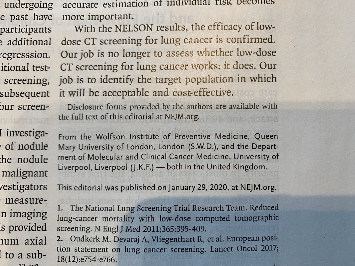 @NEJM editorial that accompanied the published NELSON trial. I am concerned@VPrasadMDMPH blood pressure might go through the roof when he sees this@adamcifupic.twitter.com/79xzQbdWBD
