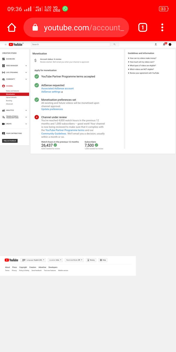 @TeamYouTube Hi YouTube Team,I have been under review for Monetization since 111 days .I am well over the required watchtime and subscriber counts.Please letme know if everything is Ok or who I can get in touch with to move my application."Channel link :http://www.youtube.com/c/challacinemaupdates …pic.twitter.com/YhUtOiquMD
