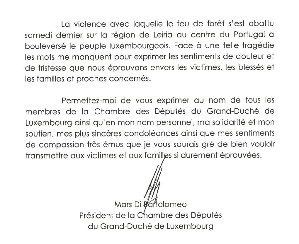 ️Feu de fôret au Portugal: messages de condoléances de la #chambrelux à@antoniocostapm@govpt et à#AssembleiaDaRepúblicapic.twitter.com/Mti7hXnWrb