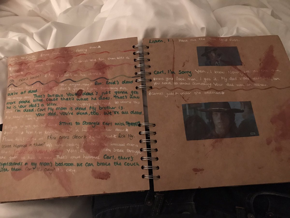 so @trulee.carey on ig (doesn't have a twitter) literally spent 11 months on a scrapbook of everything carl has done. for the whole series.pic.twitter.com/ATeF8qN5yW