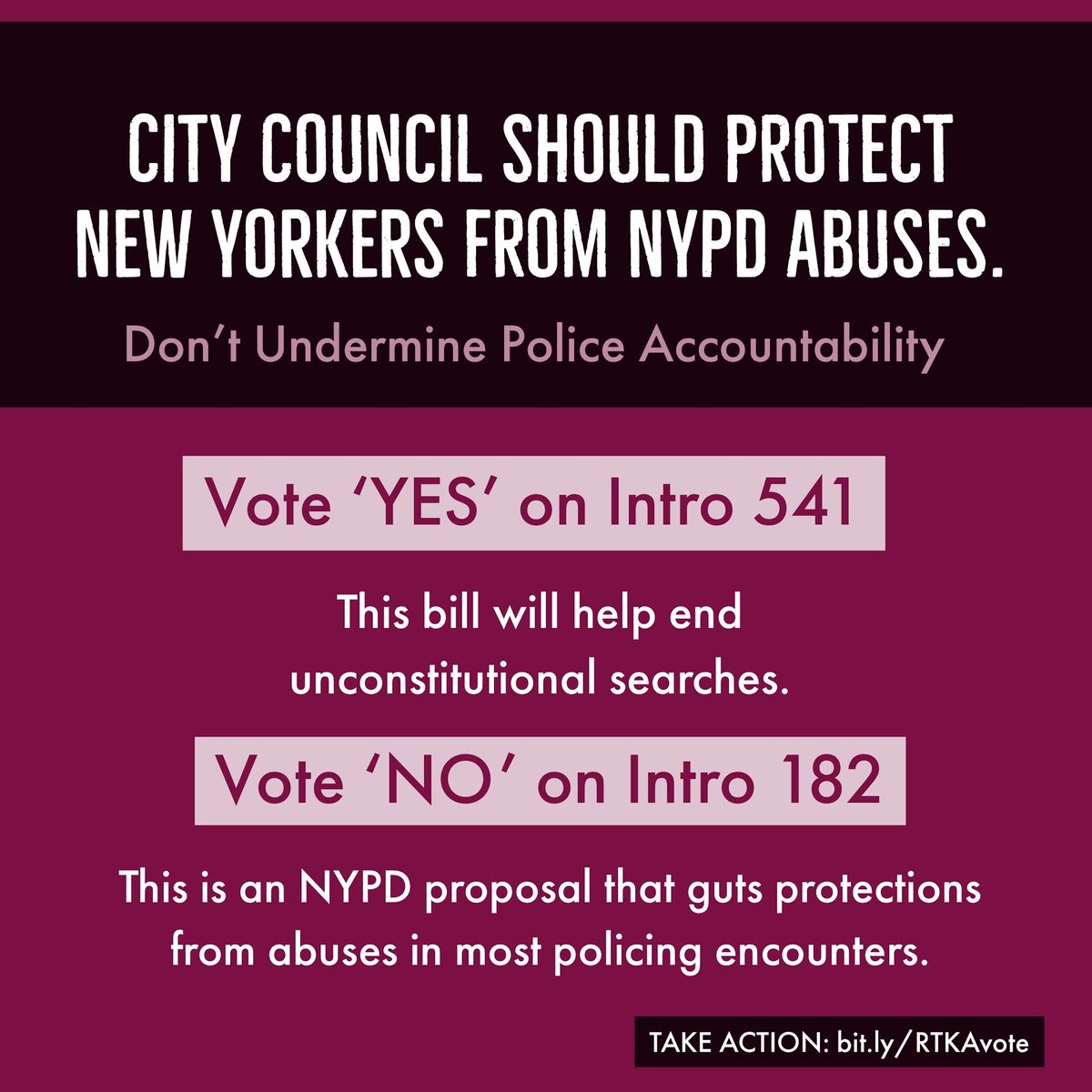 @NYCCouncil to protect New Yorkers from NYPD abuses. Tell them to vote#YesOn541 and#NoOn182: http://bit.ly/RTKAvote pic.twitter.com/uGILKwB3Pz
