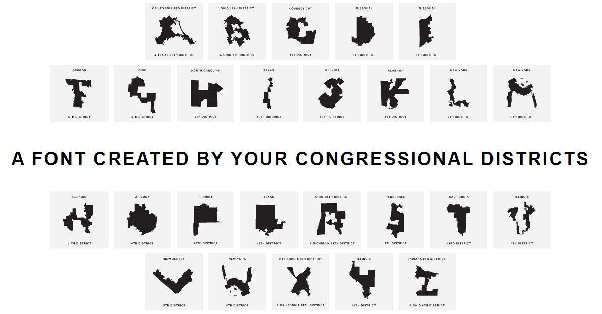 Why use Arial or Times New Roman when you can use Ugly Gerry, the font made entirely out of gerrymandered congressional districts?pic.twitter.com/V1OcsNiJMu