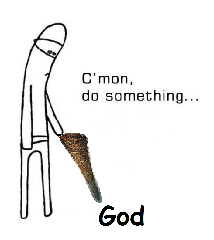 the original image has a stick and a dead fish. a lot of the edits have something a little more dangerous in place of the fish.