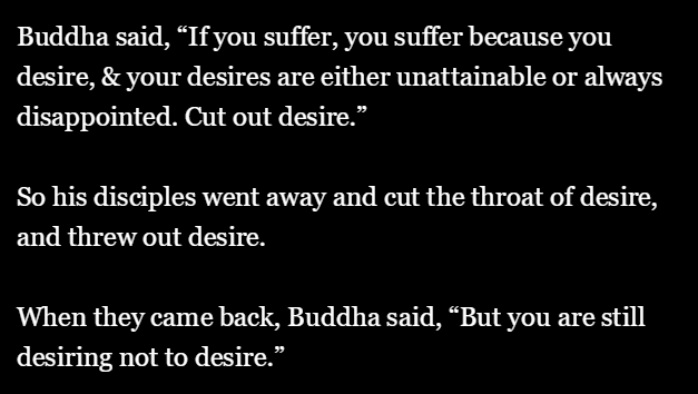 y tho? also in reference to https://twitter.com/DavidSHolz/status/1118946906883813377 … i pretty much only desire things i can attain myself. i don't understand amotivational philosophies. living without desire is a life not worth living, to me.