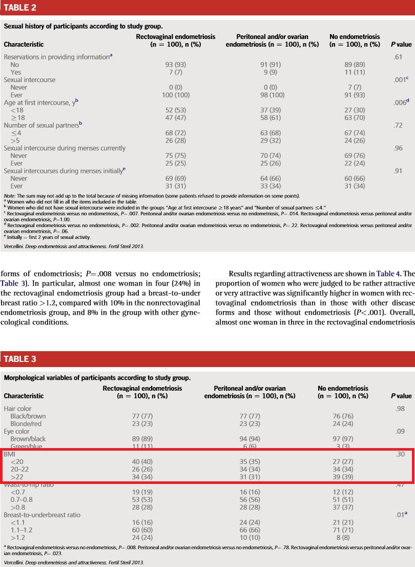 Or any other lifestyle factors that co-occur with measured attractiveness, rather than a direct causal link between endometriosis and attractiveness. Say, workout routines, types of diet, high heels (not likely, but go with it), makeup, etc.