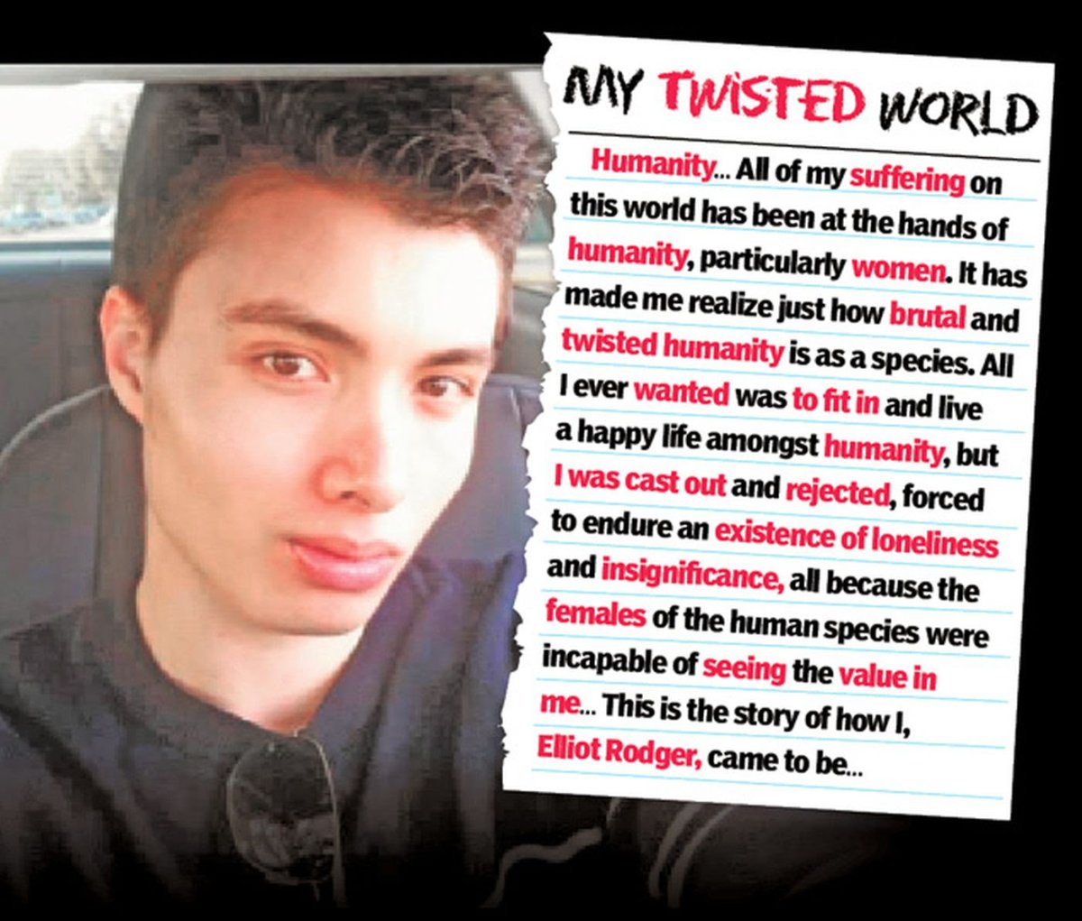 Exactly, justification for a killing spree on a note. Zero perceived responsibility for his status as outcast. (At least on that note)