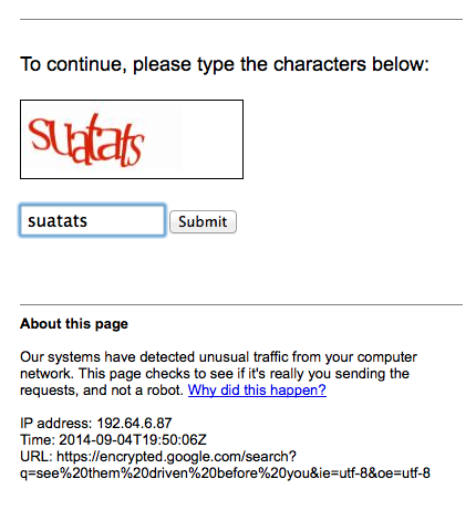 @tiedtiger (IME if you're on a corporate network it usually means somebody with the same external IP as you is running a scraper bot.)