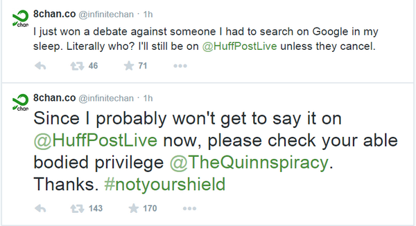 @politiquestions I've encountered vague rumblings that 8chan shitbird there uses a wheelchair. So it's the usual "ID politics for me too!"