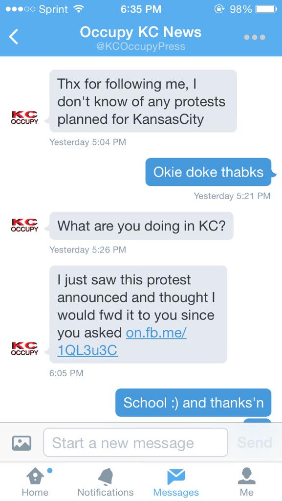 I asked about a protest location to an occupy account: You call yourself social justice?! Smdh.pic.twitter.com/C5U1S5YpAk