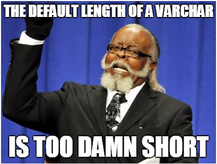 @KiwiCoder @datawench hunh, i have literally never known the default length of a varchar in any DBMS i've used because why would you do that