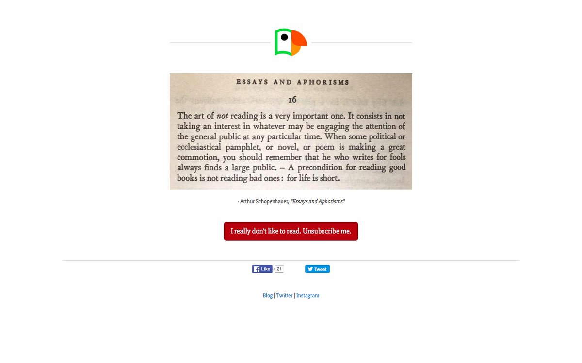 .@parrotread correlates unsubscribing from their book suggestion system with stopping reading altogether.pic.twitter.com/DdWtgWl6uU