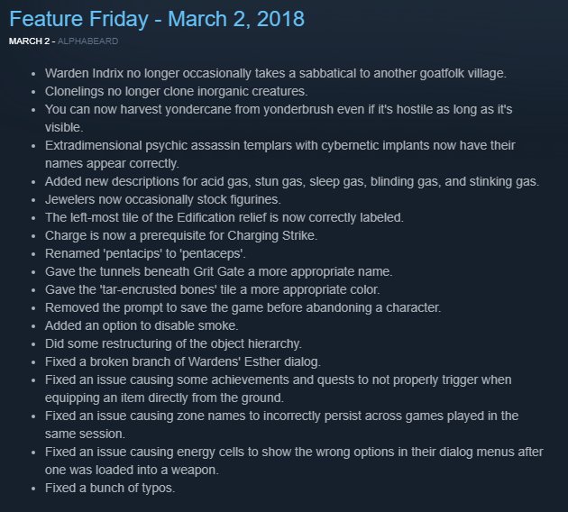 Caves of Qud Feature Friday! Indrix is back from his ... ahem ... 'vacation'. http://steamcommunity.com/games/333640/announcements/detail/1646501040015274749 …pic.twitter.com/xYpFBq1CW5