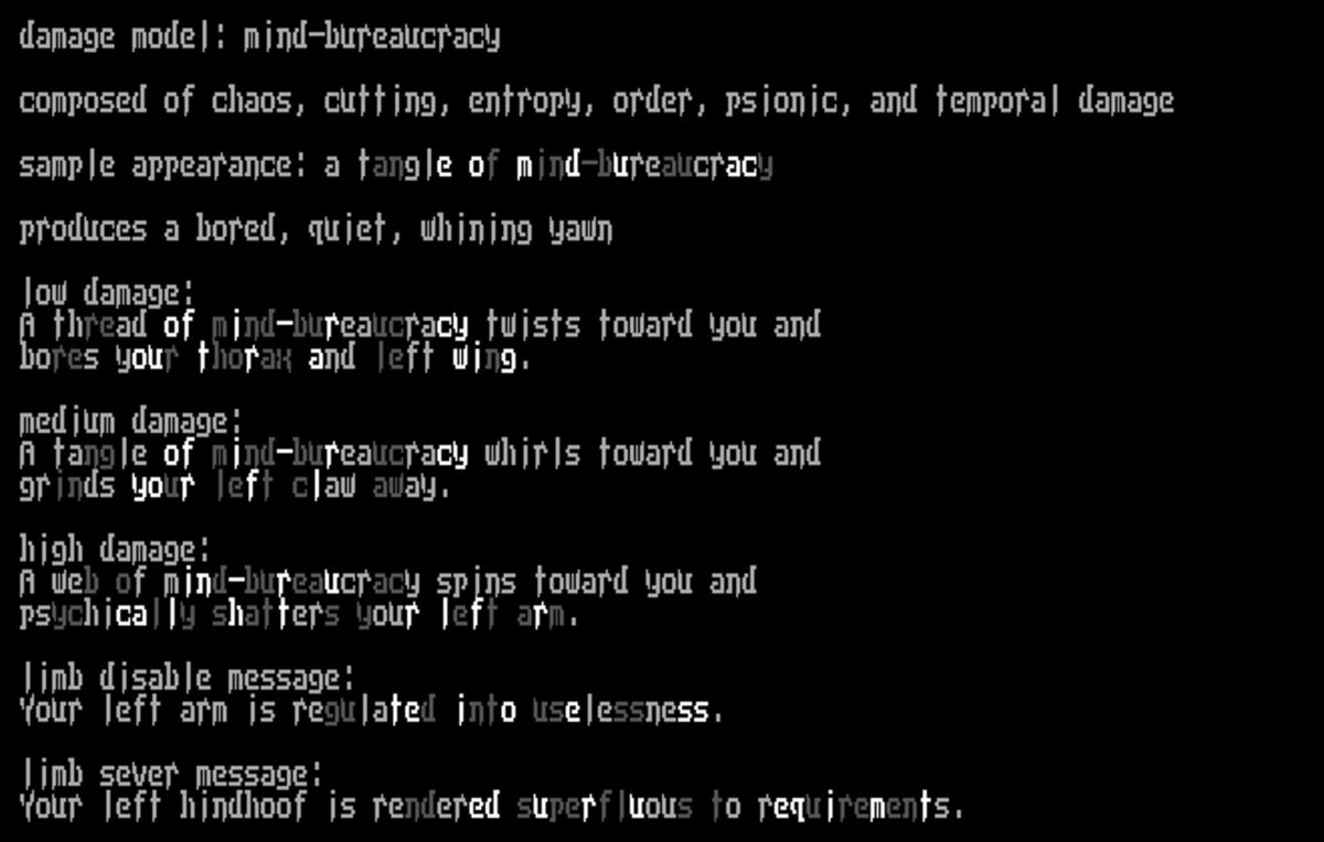 MIND — BUREAUCRACY composed of chaos, cutting, entropy, order, psionic, and temporal damage produces a bored, quiet, whining yawn pic.twitter.com/RC1X0ygPMN