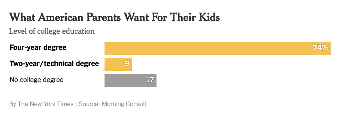 @DLeonhardt said it! For all the pushback on#highered these days, vast majority of parents still want *their own kids* to go to college.https://twitter.com/dleonhardt/status/975708766615359488 …
