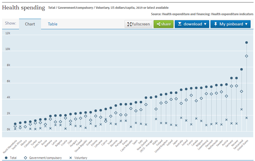 The United States has by far the highest per-capita healthcare costs in the world, but is not in the top 30 for either high life expectancy or low infant mortality. https://twitter.com/LynAldenContact/status/1328009250644357120 …pic.twitter.com/E1v7pByzRl