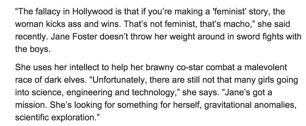 Quiet Everyone... Natalie Portman -- the arm candy in Thor -- will now tell us about the feminism...