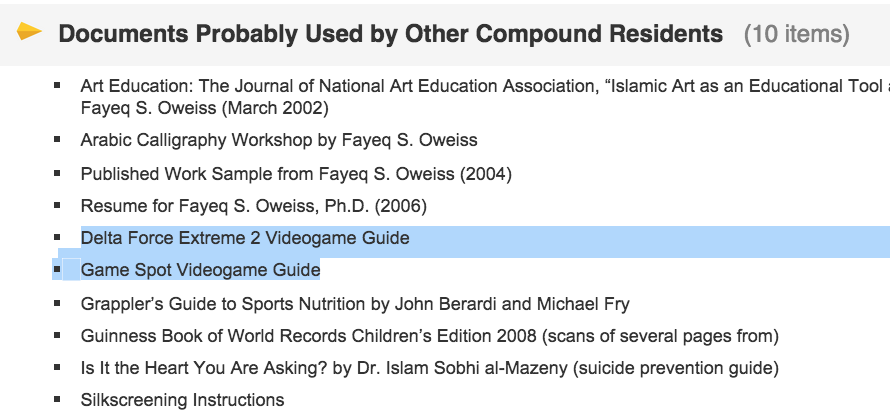 Other documents in the Osama Bin Laden compound? Delta Force Extreme 2 Videogame Guide and a suicide prevention guidepic.twitter.com/BiCL1pEhBT