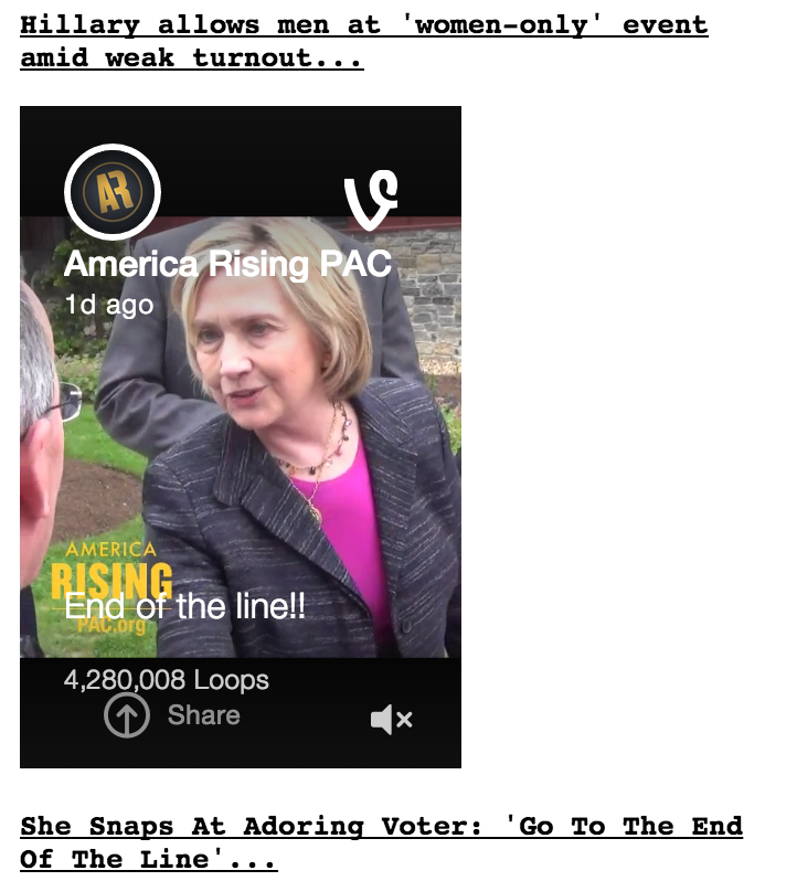 The @AmericaRising @Vine embedded directly on the Drudge Report already has 4+ million loopspic.twitter.com/OvXBOpa6lf