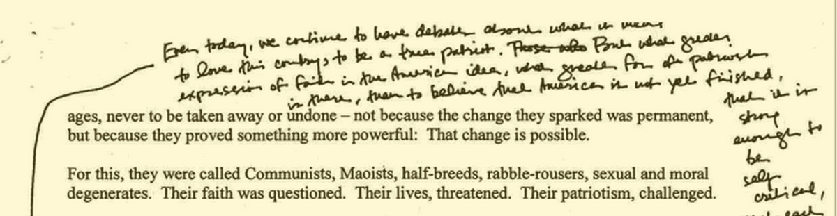 Obama Selma note: "Even today we continue to debate about what it means to love this country, to be a true patriot…”pic.twitter.com/lNXe687ZHI