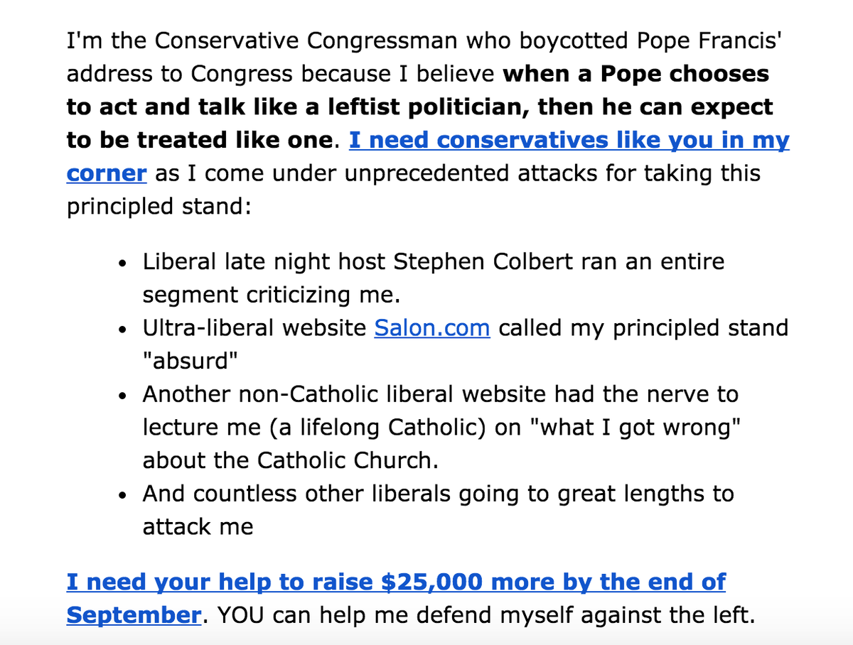 - @StephenAtHome featured in Rep. Paul Gosar fundraiser email reminding donors that "I boycotted Pope Francis” ->pic.twitter.com/3VlfwNzUxP