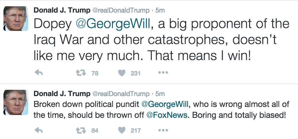 Donald Trump not happy with George Will’s anti-Trump / pro-Christie column ->pic.twitter.com/x58ZmK6Tij