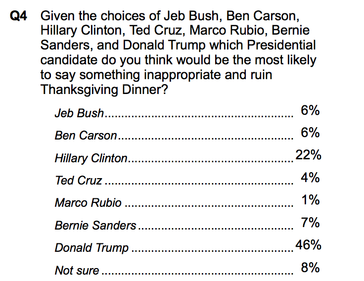 @charliespiering I'm not sure why Rand Paul wasn't on the poll. He could ruin the shit out of thanksgiving.