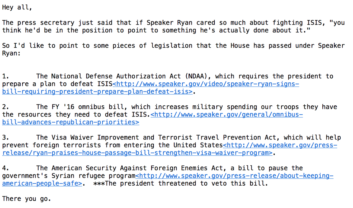Josh Earnest fires back @SpeakerRyan for criticizing Obama for focusing on gun control instead of ISIS - asks what Ryan has done?