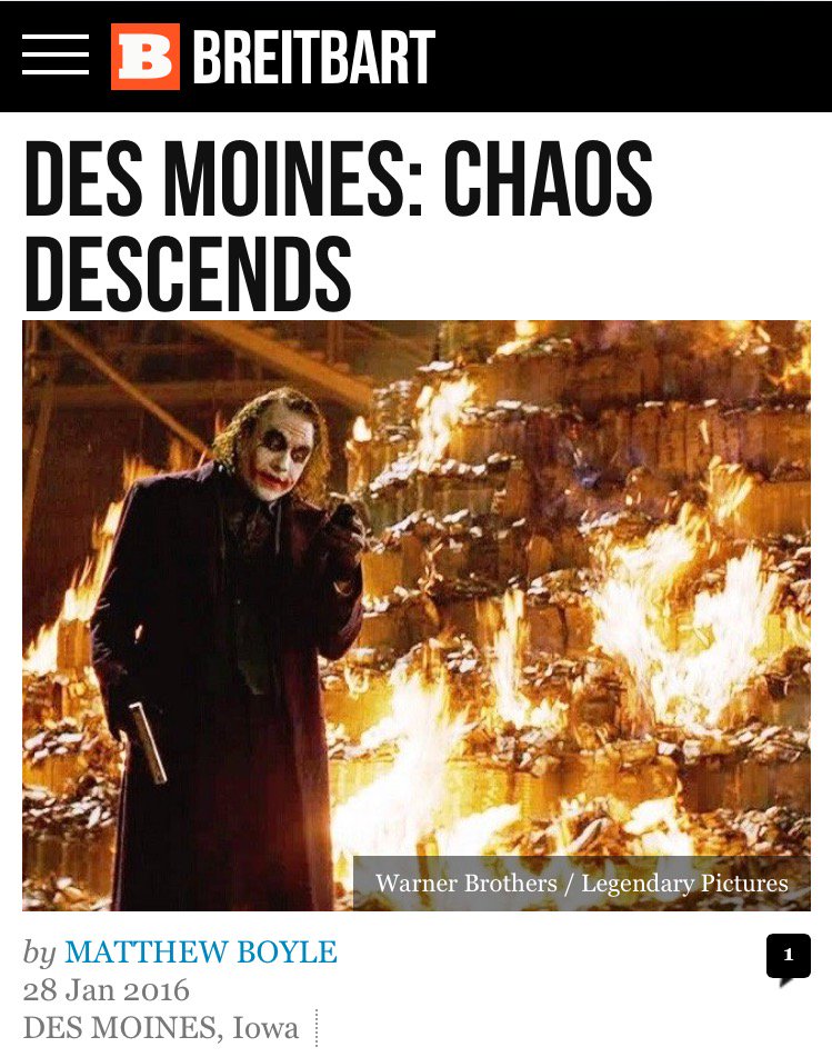 -@mboyle1 dispatch from Iowa - http://www.breitbart.com/big-government/2016/01/28/des-moines-chaos-descends/ …pic.twitter.com/CMMryhbcML