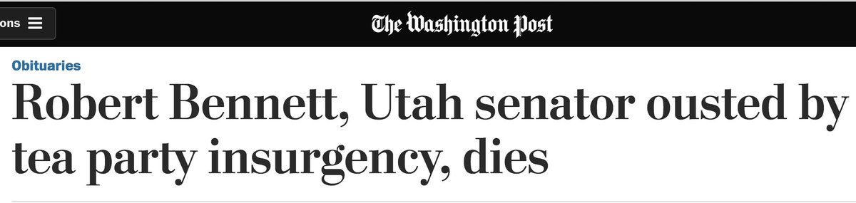 This headline reads as if the Tea Party killed Sen. Bennett - Surely he had more of a legacy than losing a primary…pic.twitter.com/3wNALSMN78