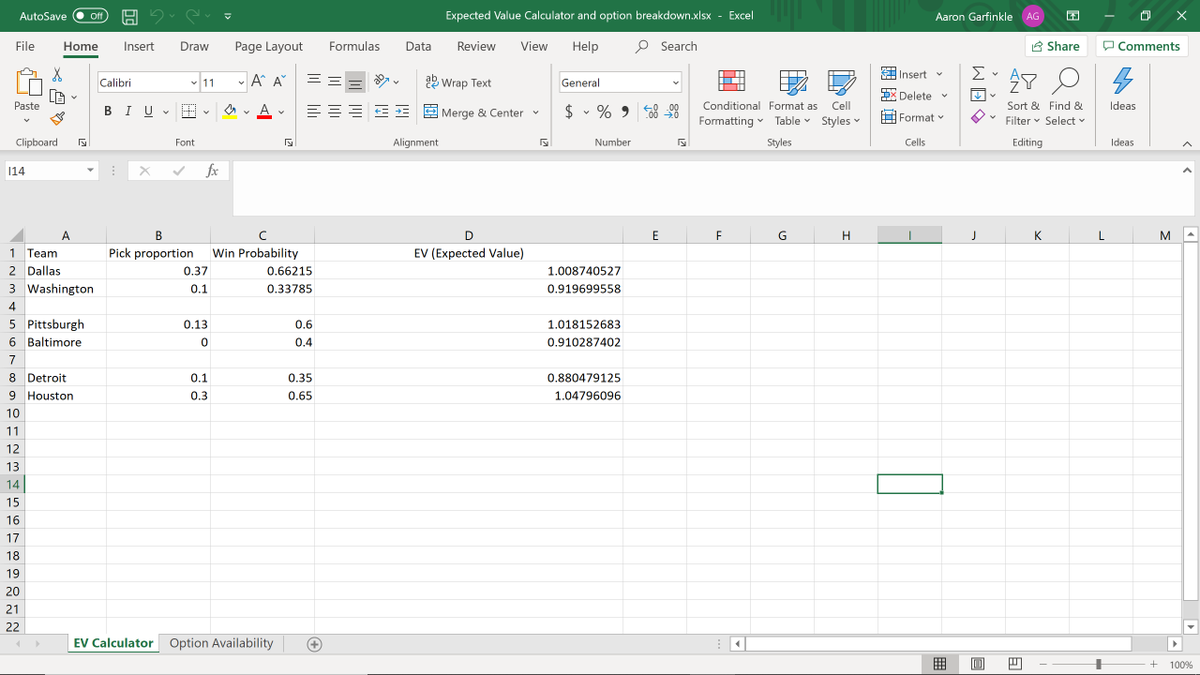 @CircaSports#CircaSurvivor has unique Thanksgiving only picks this Thursday, so I did what any nerdy football fan would do and created a customizable EV calculator and a breakdown of all remaining player options. If you would like the sheet just DM me!pic.twitter.com/7wApW05wKq