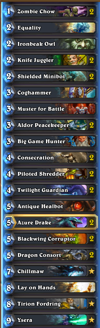 @koronekoHS What do you think about -1 lay on hands +1 muster? Deck seems to need the early game more than lay on hands.