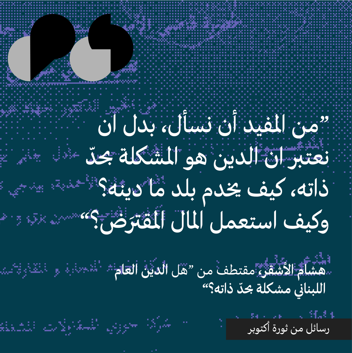 في قسم "رسائل من ثورة أكتوبر" على موقعنا، هشام الاشقر يشرح كيف أن الدين بحدّ ذاته ليس المشكلة بالضرورة. الدين العام: كيف نستخدمه؟ |