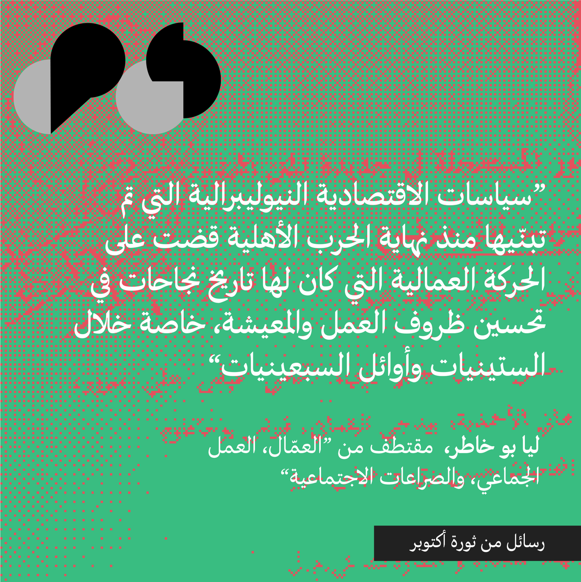 "Dispatches from the October Revolution:" Organized labor played a key role in uprisings around the region, but it is almost absent in Lebanon's. In "Did Someone Say Workers?" Lea Bou Khater explains what happened to the labor movement. |