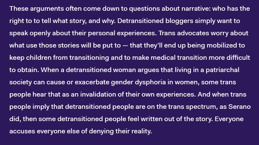You can't hold Serano to the coals & not do same 4 Michfest-supporting/TERFy detransition blogs. Do they "simply want to tell their story"?