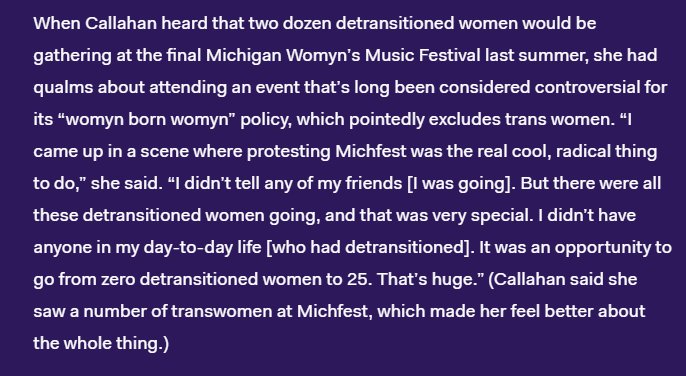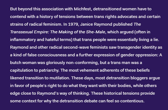 I want to say that the detransition story on Outline today is relatively harmless. But I think it lacks some key nuance necessary to be fair