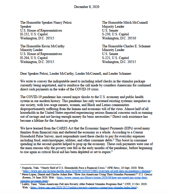 NEW: I've joined 58 House members in urging House and Senate leadership to include stimulus checks