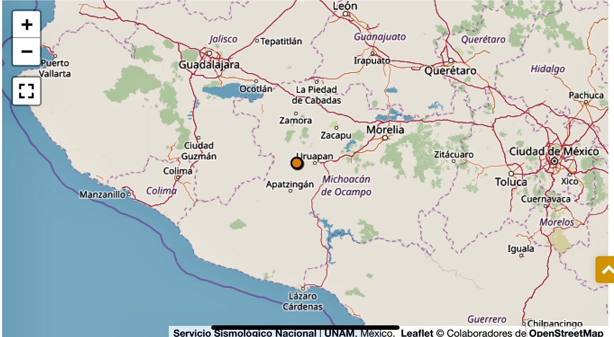 @SSNMexico Nuevo#sismo cercano a#Uruapan#Michoacán •M4.1 •Prof 5km La zona tiene una tectónica compleja y vulcanismo activo, el enjambre sísmico podría ser por intrusión magmática, aunque no necesariamente por el nacimiento de un nuevo volcán Vía@SSNMexicopic.twitter.com/WxQMhF99D4