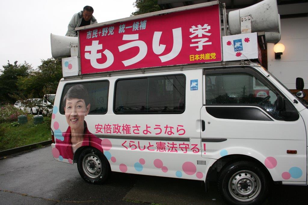 おおっ!もうり栄子カーが素敵にリニューアル! さあ土日。街中におもいっきり「もうり」の風を吹かせよう!