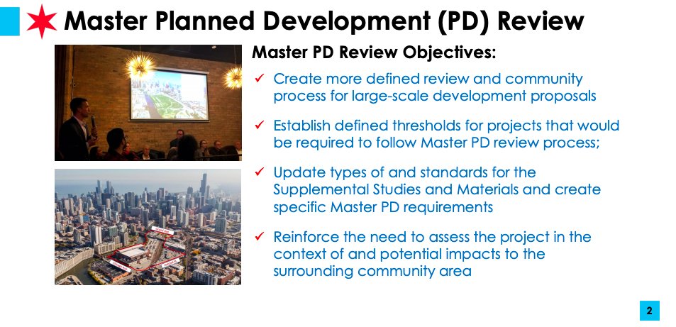REMINDER: DPD is hosting a webinar at 6 p.m. Tuesday to review the proposed Master Planned Development guidelines, which would require a more robust public review period for so-called "mega projects." Register now: https://cityofchicago-org.zoom.us/webinar/register/WN_Z8ukMhvYS7e23DPd_Ic3CA …pic.twitter.com/BzFybe67L1