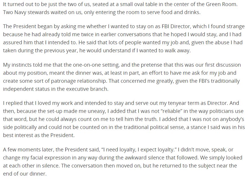 In light of Comey’s opening statement, did President Trump tell Christopher Wray, “I expect loyalty,” and, if so, what was Wray’s reply?