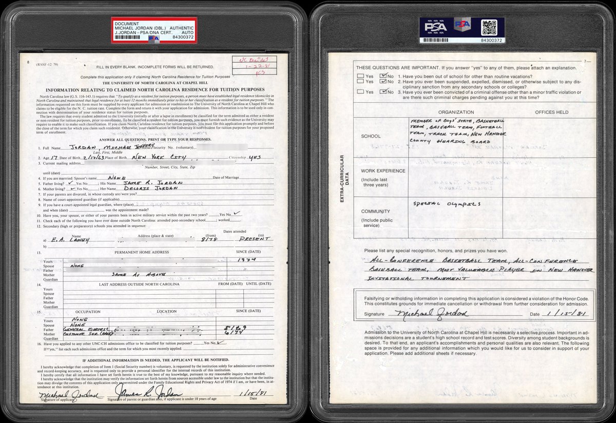 level, the basketball icon developed his skills in college. This 1981 UNC document was signed twice by Jordan (front and back):pic.twitter.com/w5ehanFBLy