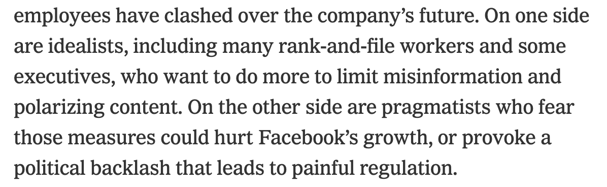 According to the NYT, Facebook knows perfectly well how to slow the spread of misinformation on its platform. It has mostly chosen not to do so because the company is run by a sociopath. https://www.nytimes.com/2020/11/24/technology/facebook-election-misinformation.html …pic.twitter.com/MT3E2k6Nhw