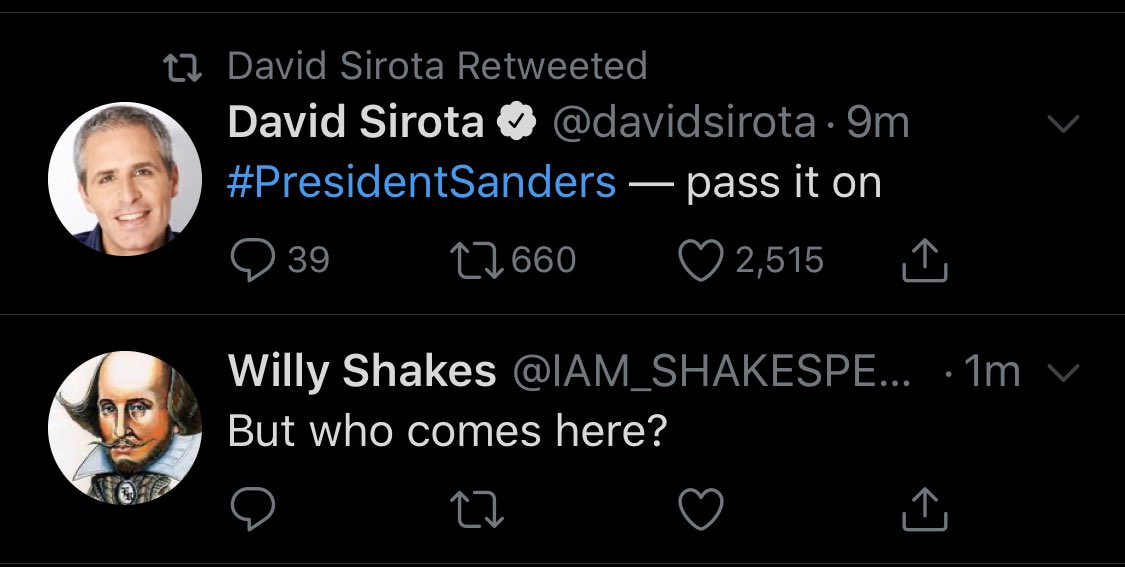 Bloomberg’s campaign manager, after prompting from Chuck Todd, made a joke about how a Bloomberg terminal would have the Iowa results by now (no, the “joke” made no sense), but, yeah, let’s definitely have another person with his own big business interests in the White House.