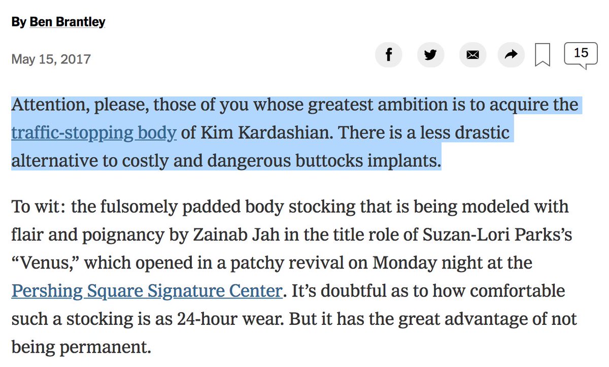Hi Chris - Thank you for your comment. We wanted to share Ben Brantley's response.https://twitter.com/NYTimesPR/status/1022864714525749248 …