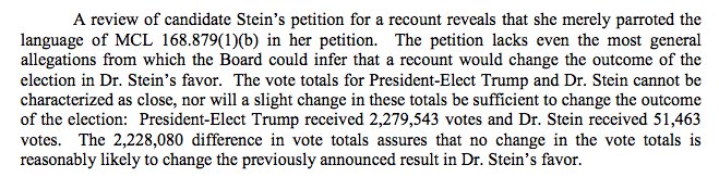 But, a state appellate court, about the same time, held that the Stein-requested recount should have been rejected. https://assets.documentcloud.org/documents/3233401/Michigan-COA-Decision.pdf …pic.twitter.com/UCzyJ7jEBa