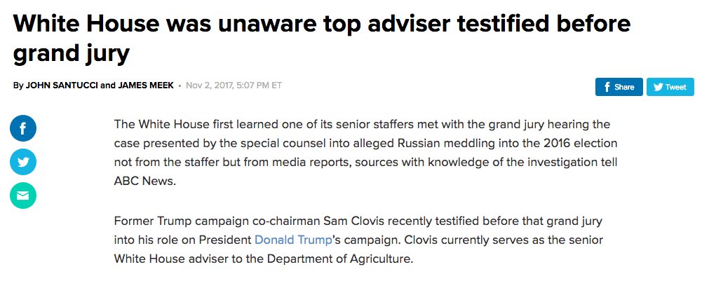I’m just a schmo amateur in law land, but sure sounds like Clovis’ Lawyers told him to not say a thing about Grand Jury to the White House.