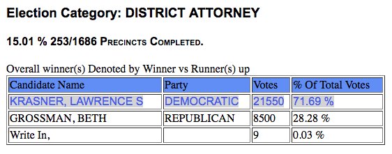 Meanwhile, in Philly, a change is coming to the prosecutor's office. A liberal, reform-oriented lawyer is winning: http://phillyelectionresults.com/ pic.twitter.com/enJmAK0DRO