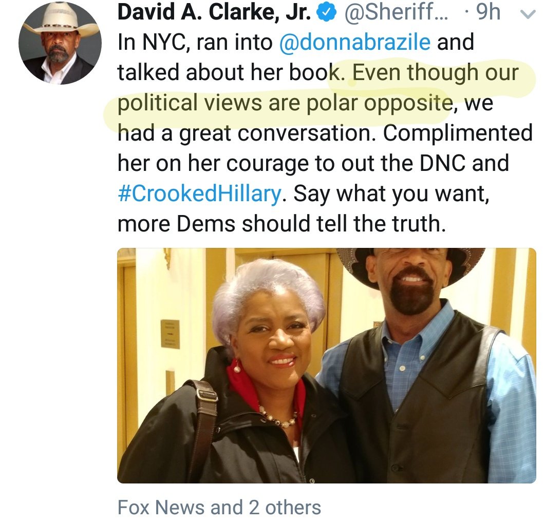 Clarke published photo. We don't know when taken. Clarke states they have opposing views. Hillary has been photographed w Trump ffs.pic.twitter.com/e6PEn825Ht
