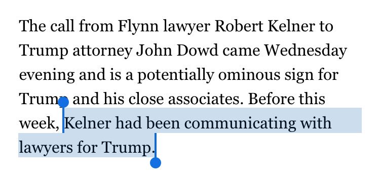 Weird, the Post changed its story with no notice or correction. It originally said Kelner had been “strategizing with lawyers for Trump, his son Donald Trump Jr. and his son-in-law Jared Kushner, among others.” Here it is now:pic.twitter.com/ckFQpi17Xa