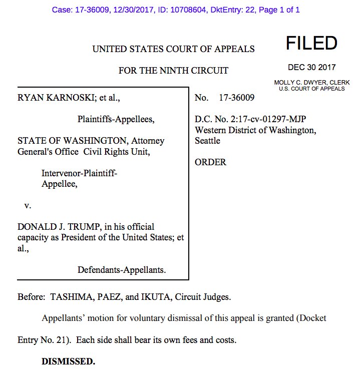 DOJ's motion to dismiss the trans military service ban appeal was granted in the 9th Circuit (Karnoski), but the 4th Circuit requested a response due by 1/9 (Stone). The motion remains pending at the DC Circuit (Doe).pic.twitter.com/M2aAbwbaiG